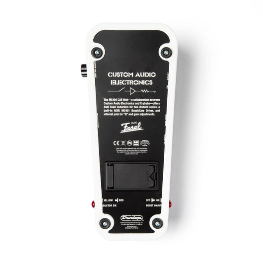The MC404 CAE Wah was developed by Bob Bradshaw of Custom Audio Electronics and the Cry Baby design team with the goal of creating a highly versatile wah-wah of top-grade components. It features dual Fasel inductors with two distinct voices (high-end emphasis or low to mid resonance), and a built-in MXR MC401 Boost/LineDriver adds even more flexibility. Choose between inductors and turn the boost on or off with the side-mounted kickswitches; bright LEDs on each side of the wah indicate operation status. The MC404 boasts true hardwire bypass, a long-life CTS potentiometer, and internal pots for Q and gain adjustments.